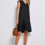 Dieses knielange Kleid von Street One für Damen bringt mit dekorativen Rüschen und Volants verspielte Leichtigkeit in deine Garderobe. Der V-Ausschnitt setzt feminine Akzente, während die weiche Viskose-Qualität für ein angenehmes Tragegefühl sorgt. Ein sommerlicher Hingucker mit luftigem Charme! Knielanges Kleid mit Volants V-Ausschnitt Dekorative Details Rüschendetails als Armansatz Weiche Viskose Material: 100% Viskose
