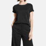 Dekorative Tape am Ausschnitt. Ein vielseitiges Basic, das in keiner Garderobe fehlen sollte: Mit dem figurumspielenden T-Shirt erhältst du ein Lieblingsstück, das sich ganz einfach kombinieren lässt. Eine dekorative Ausschnittblende vervollständigt das Design. Der nachhaltige Baumwoll-Jersey punktet mit tragkomfortablen Eigenschaften.