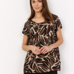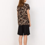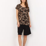 SC-ROKSANA 1 ist eine Bluse aus 100% LENZING™ ECOVERO™ Viskose. Sie ist mit einem tropischen Blattmuster bedruckt, hat kurze Ärmel und einen Rundhalsausschnitt. Dieses Oberteil lässt sich gut mit Hosen oder Röcken für einen angemessenen Arbeitslook kombinieren und passt ebenso gut zu Jeans für einen lässigen Ausflug.