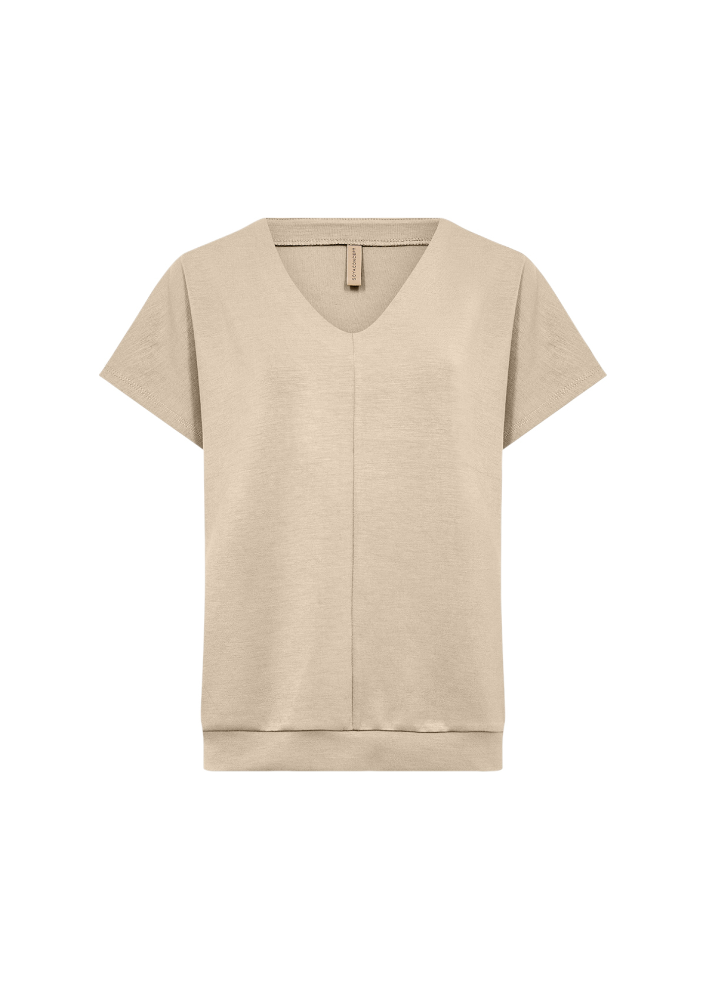 SC-BANU 244 ist eine Bluse aus 48% Modal, 48% Polyester und 4% Elastan. Die Bluse hat kurze Ärmel, einen V-Ausschnitt und eine lockere Passform mit dezenten Nahtdetails. Kombiniere sie mit Jeans oder einem Rock für einen lässigen und bequemen Look.