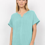 SC-Radia 9 ist ein schönes T-Shirt in weicher, Viskosequalität. Das T-Shirt hat einen diskreten Splitneck, kurze Ärmel und Falten auf dem Rücken. Style es mit einem schönen Rock für den perfekten Sommer-Look.
