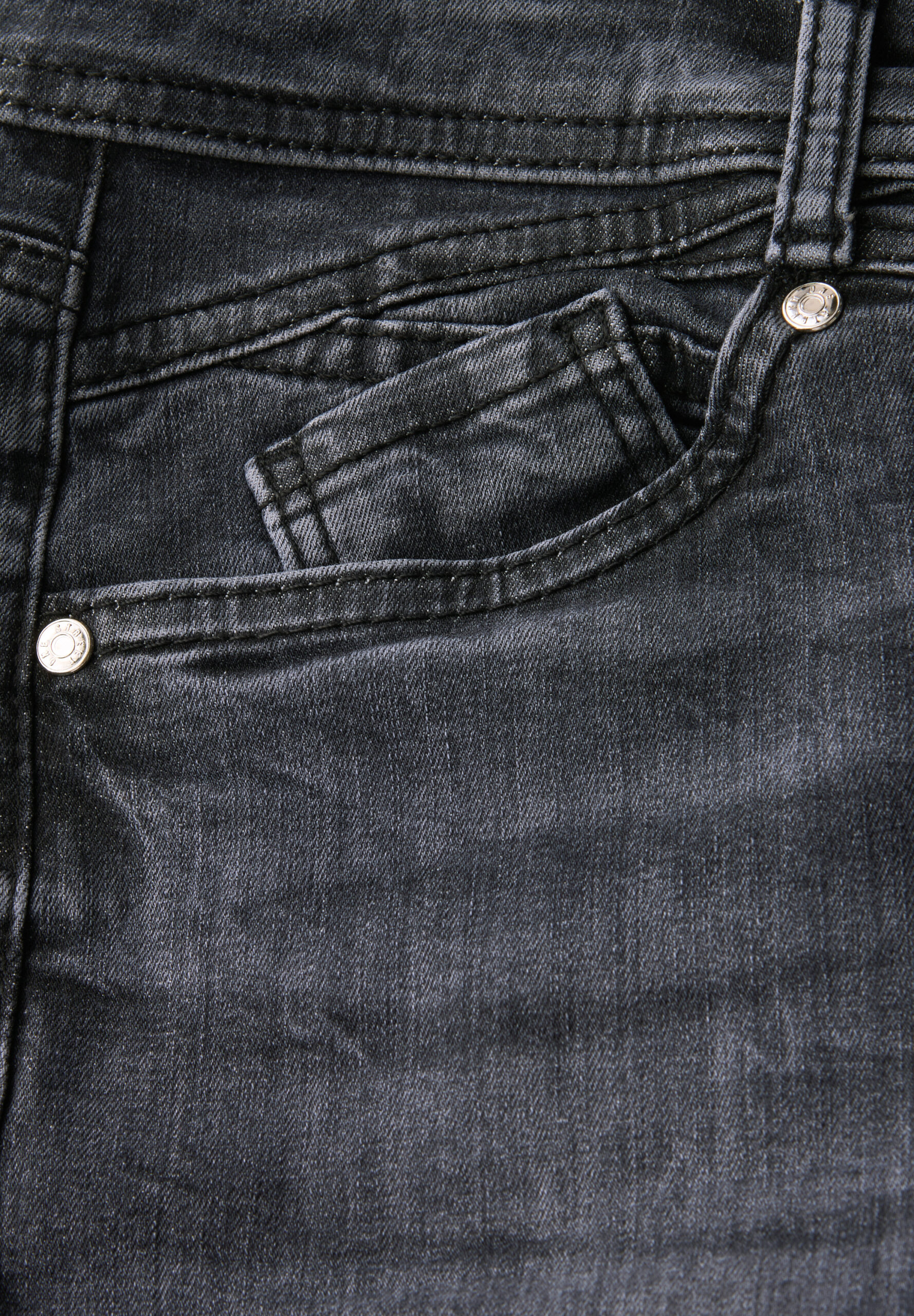 Die Jeanshose im Style Jane von Street One für Damen überzeugt mit ihrer modernen grauen Waschung und dem lässigen Casual Fit. Mid Waist und Slim Legs sorgen für eine figurbetonte, aber bequeme Passform. Der elastische Baumwollmix und der klassische 5-Pocket-Style machen sie zum vielseitigen und komfortablen Allrounder im Alltag. Jeanshose Mid Waist und Slim Legs 5-Pocket-Style Graue Waschung Baumwollmix mit Stretchanteil Material: 82% Baumwolle, 15% Polyester, 3% Elasthan