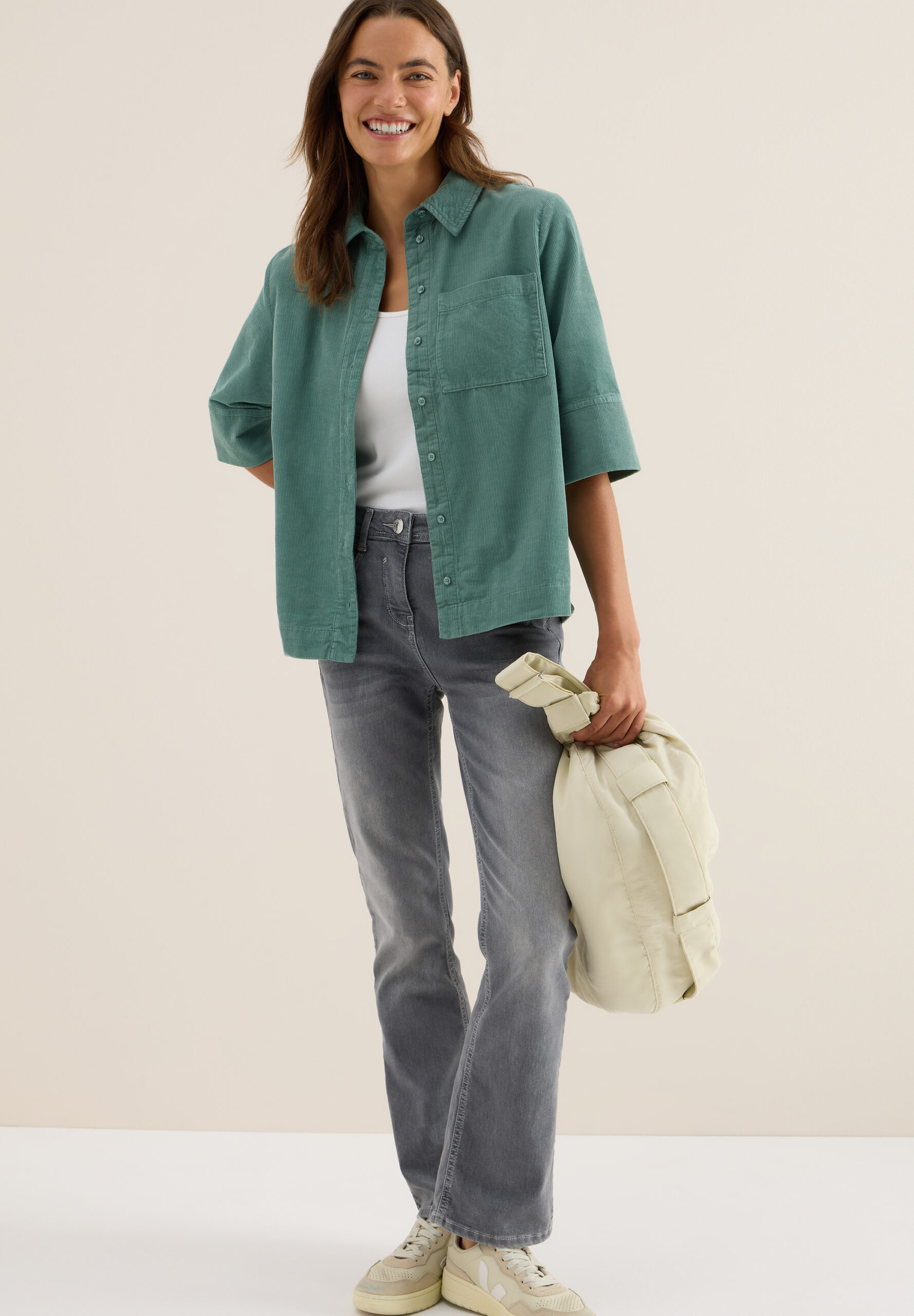 Die Hemdbluse aus Cord von CECIL für Damen bringt mit ihrer soften Baumwollqualität und kurzem Ärmel lässiges Flair in deinen Look. Hemdkragen, Brusttasche und Knopfleiste unterstreichen den authentischen Stil. Ideal für entspannte Outfits mit Wohlfühlcharakter. Kurzarmbluse Hemdkragen Knopfleiste Brusttasche Softe Cordqualität aus reiner Baumwolle Material: 100% Baumwolle