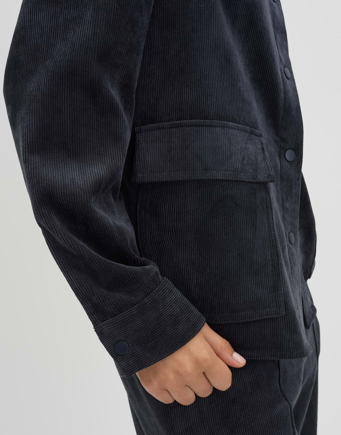 Workwear Suiting neu interpretiert, das weich fallende Overshirt aus Cord mit Utility Taschendetails bringt frischen Schwung in die Garderobe. Im Set mit der passenden Hose entsteht ein unkomplizierter Look, der von Office bis Afterwork stilsicher begleitet.