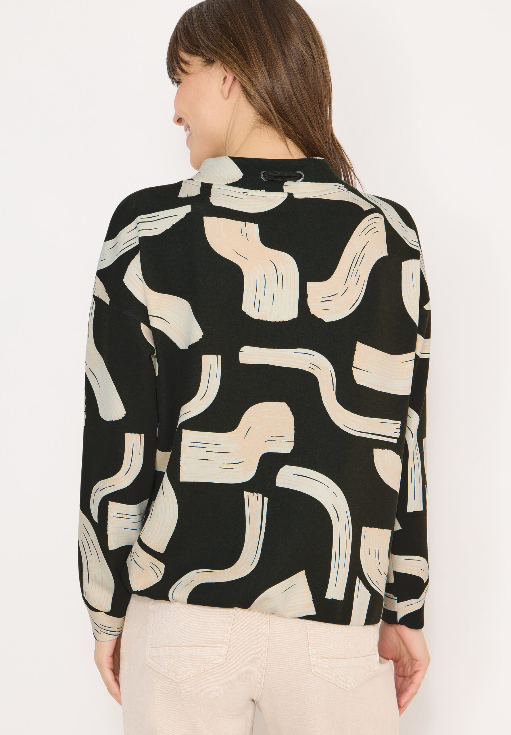 Das Langarmshirt von CECIL für Damen zeigt sich mit grafischem Muster und elastischem Saum für eine bequeme Passform und einen lässigen Look. Durch sein angenehmes Tragegefühl eignet sich das Shirt wunderbar für gemütliche Styles in deinem Alltag. Langarmshirt Grafisches Muster Elastischer Saum Funnel Neck mit Tunnelzug Langarm mit Bündchen Material: 49% Polyester, 44% Viskose, 7% Elasthan