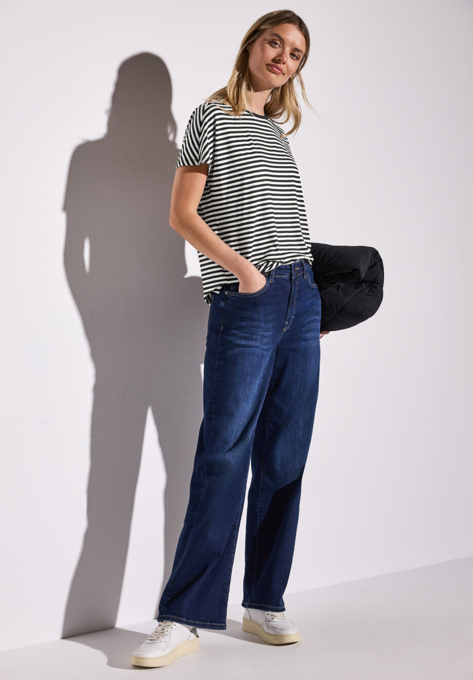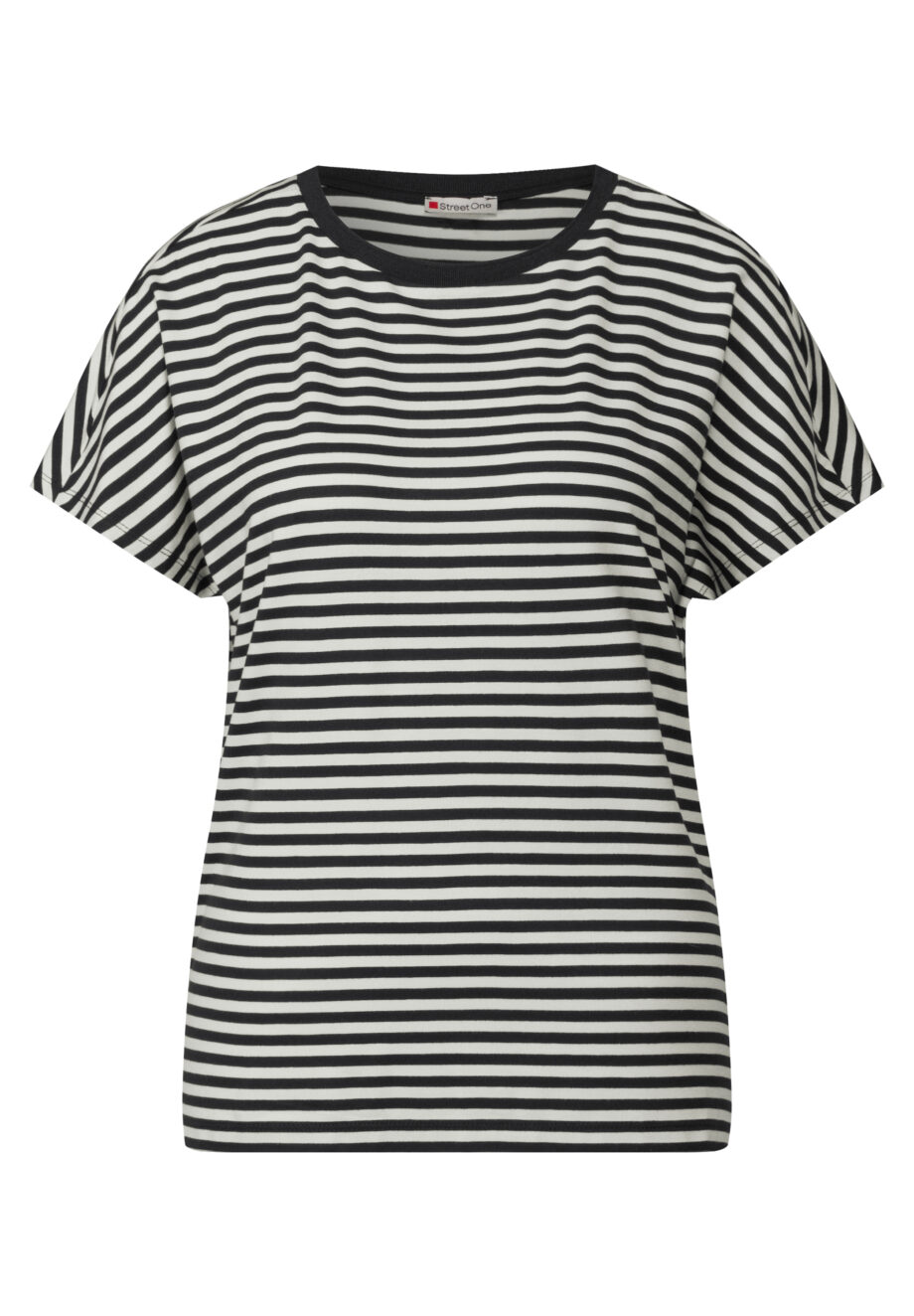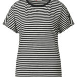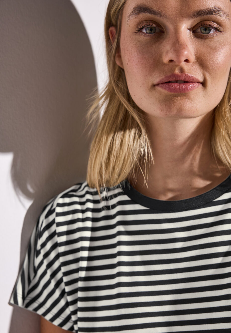 Mit seinem modischen Streifenmuster setzt dieses Shirt im Style Crista von Street One für Damen stylische Akzente. Rundhalsausschnitt und dropped shoulders runden den Look ab, während der Viskosemix mit Stretchanteil für hohen Tragekomfort sorgt. Damenshirt Rundhalsausschnitt Dropped Shoulder Streifenmuster Viskosemix mit Stretchanteil Material: 95% Viskose, 5% Elasthan