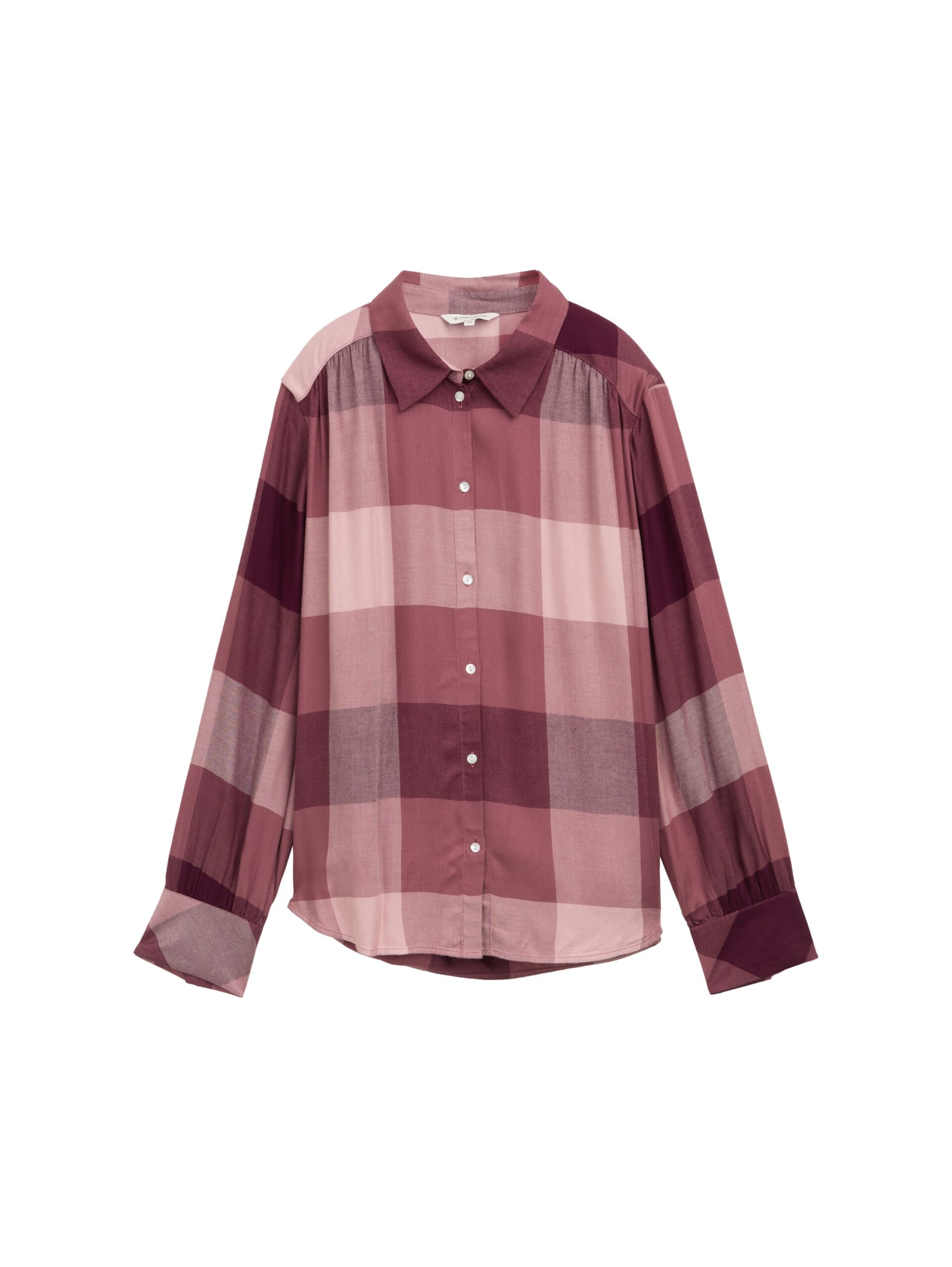 * Karierte Hemdbluse aus Viskose mit leichten Raffungen an den Schultern und auf der Rückseite