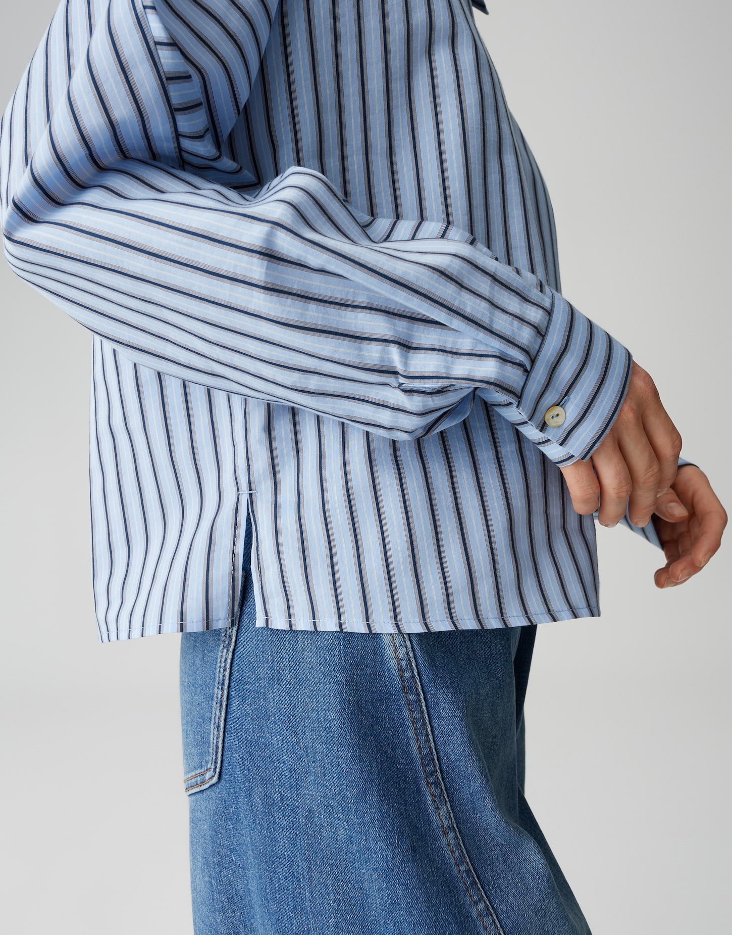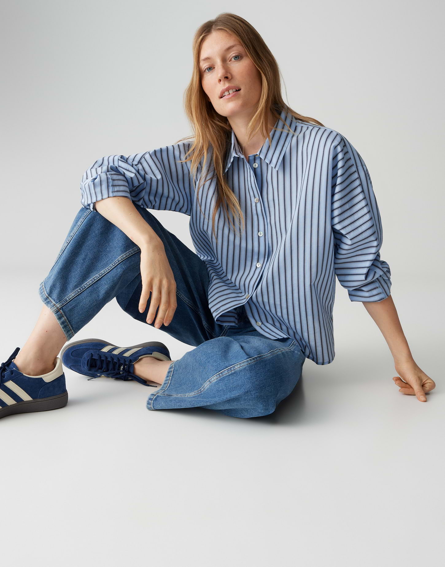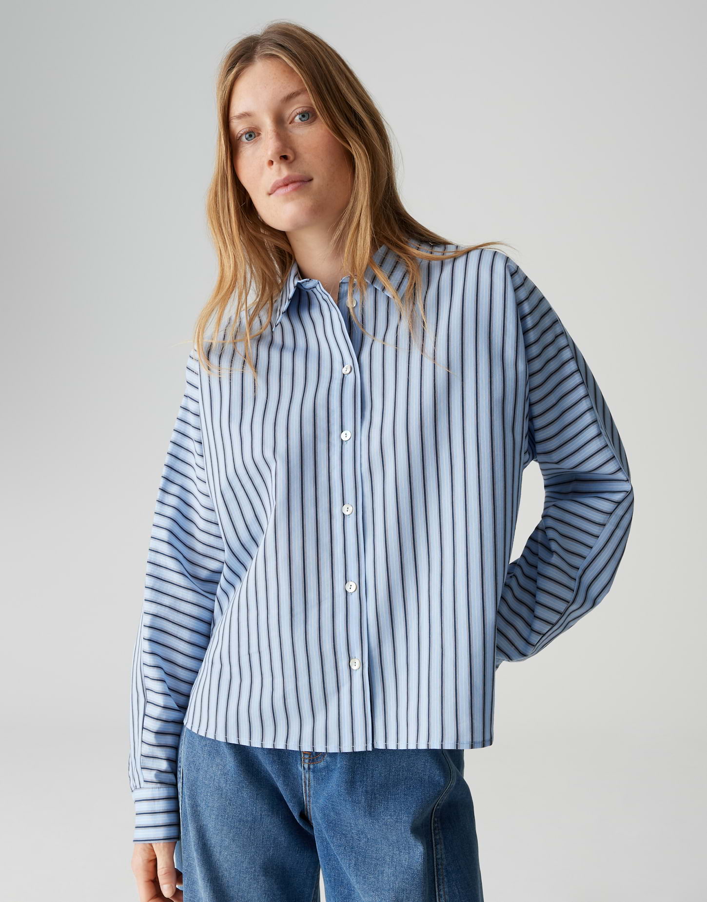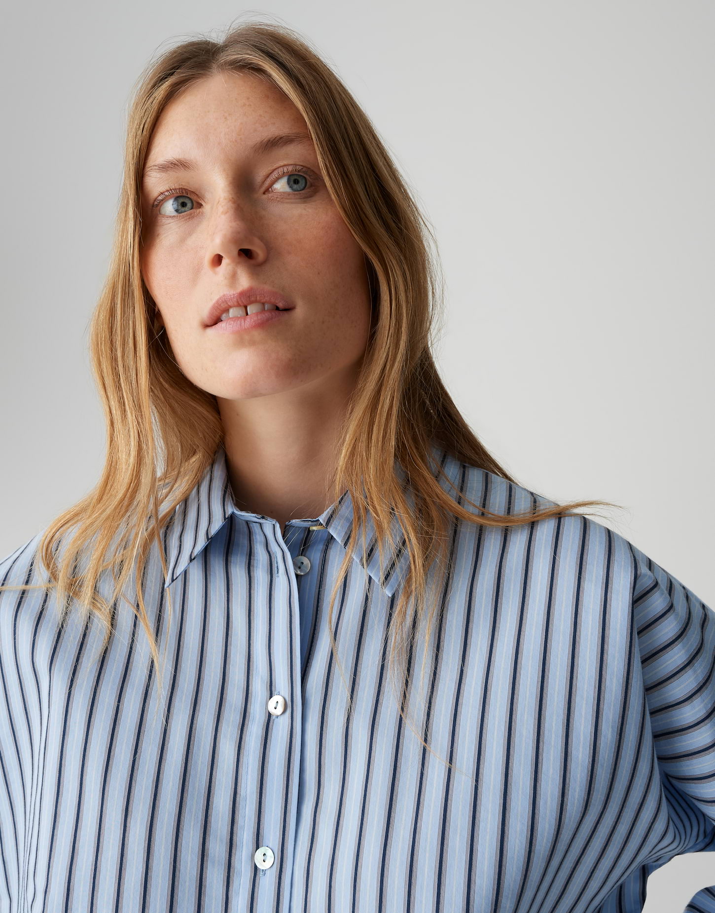Mehrfarbige Streifen und der besondere Fledermausärmel bringen Dynamik in die klassische Bluse, die mit cleanem Design und schoppbarem Gummiband im Ärmel punktet. Das cleane Design machen sie zum idealen Partner für frische Office-Outfits.