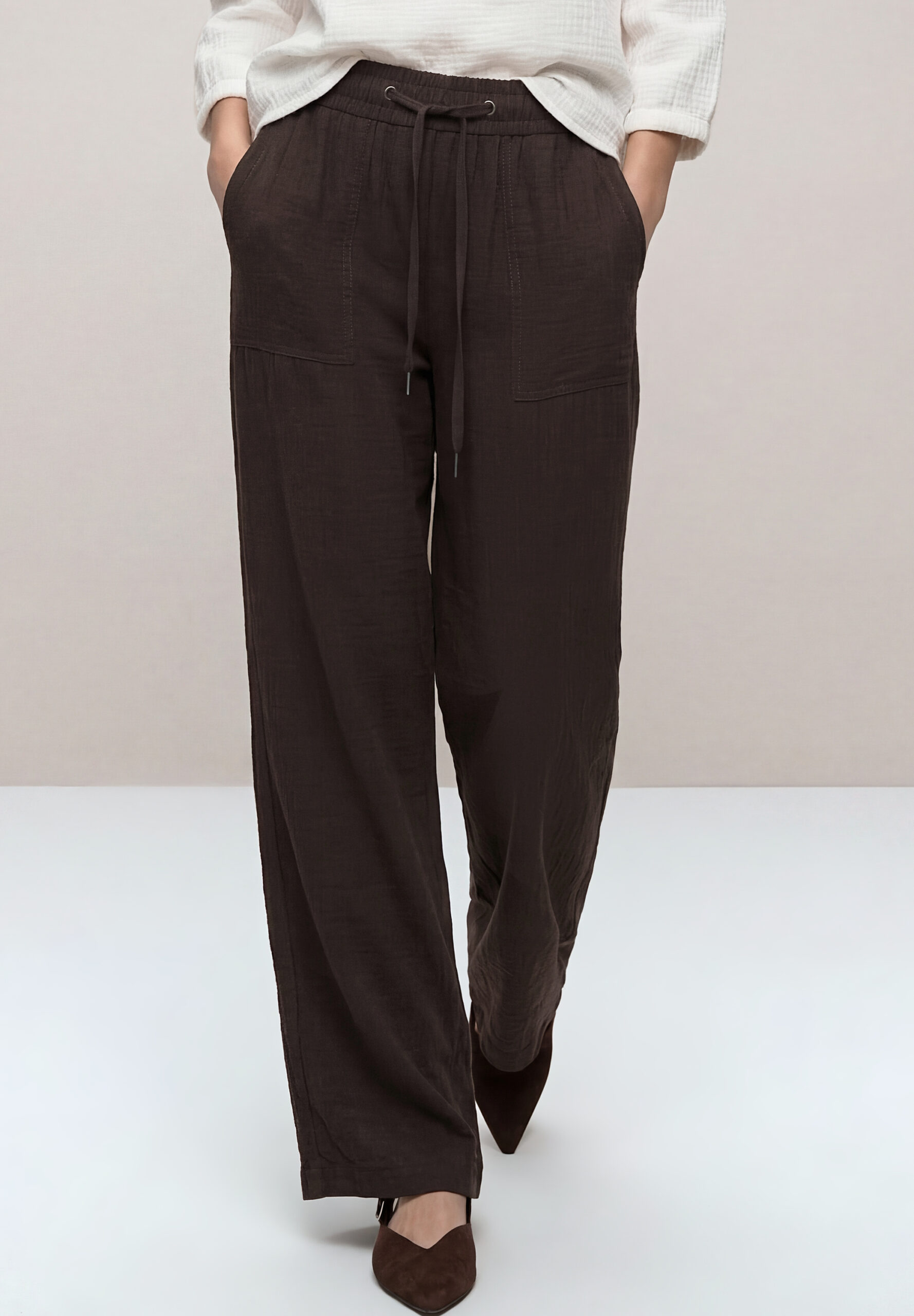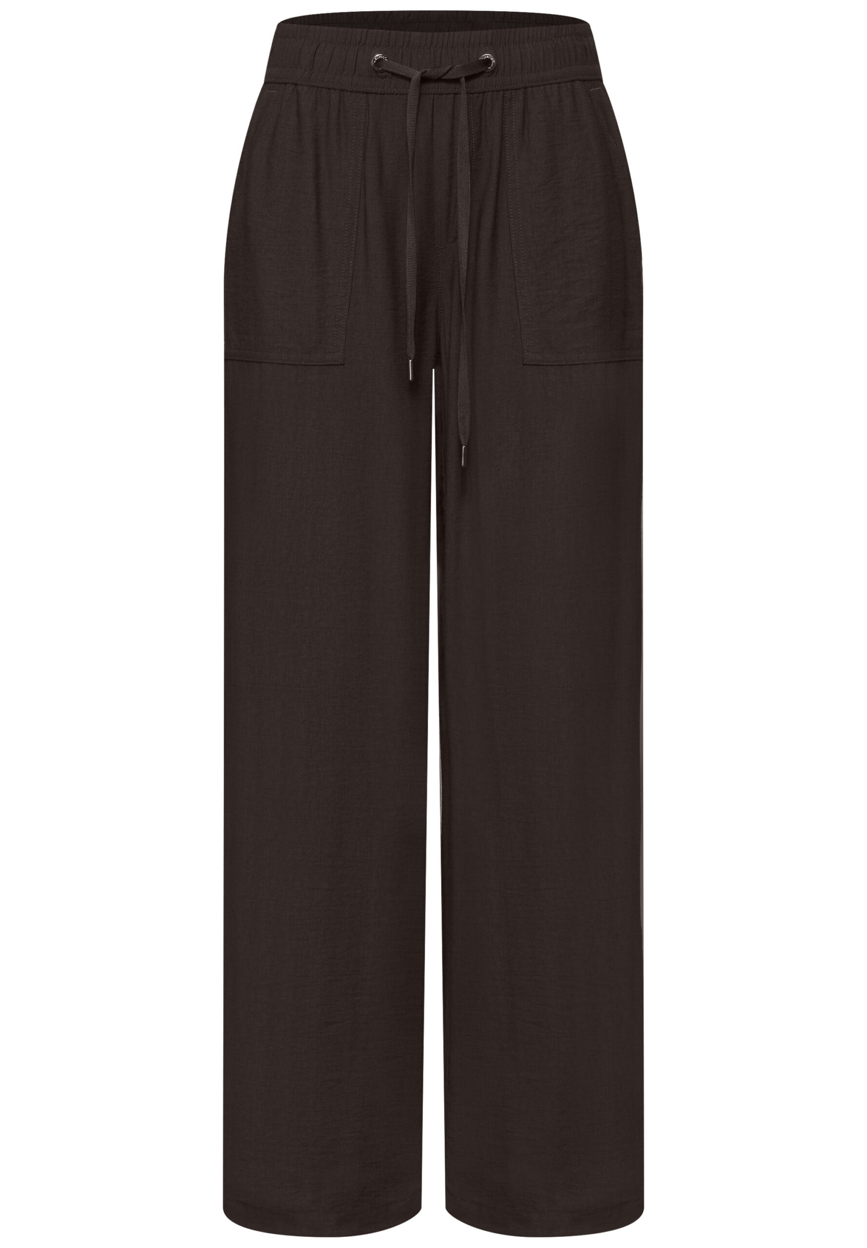 Die Wide Leg Crepe Hose im Style Emee von Street One für Damen begeistert mit luftig-leichter Qualität und weich fließendem Fall. Loose Fit und Wide Legs sorgen für eine moderne Silhouette mit High Waist. Der elastische Bund mit Tunnelzug macht die Hose besonders bequem. Seitliche Taschen und die unifarbene Optik machen sie vielseitig kombinierbar. Stoffhose Loose Fit Wide Legs High Waist Viskose-Nylonmix Elastischer Bund mit Tunnelzug Seitliche Taschen Lässiger Allrounder für sommerliche Looks Unifarbe Material: 85% Viskose, 15% Nylon