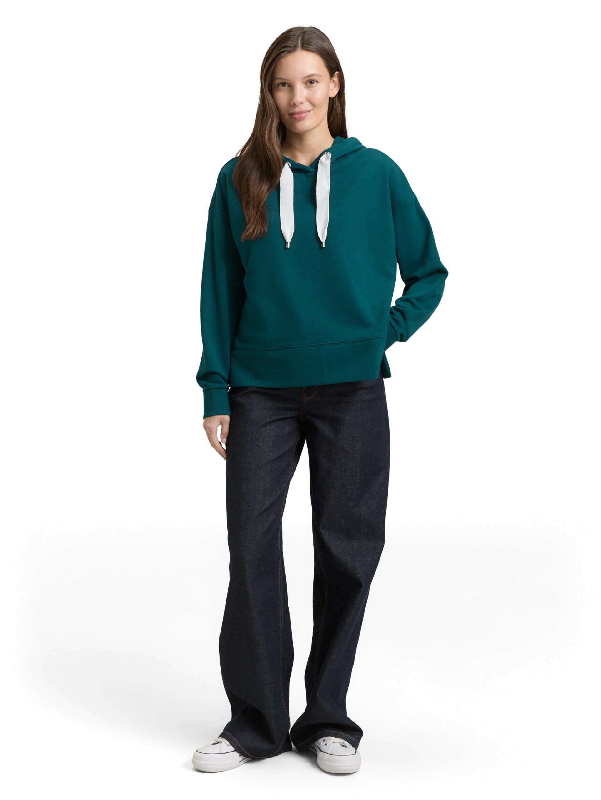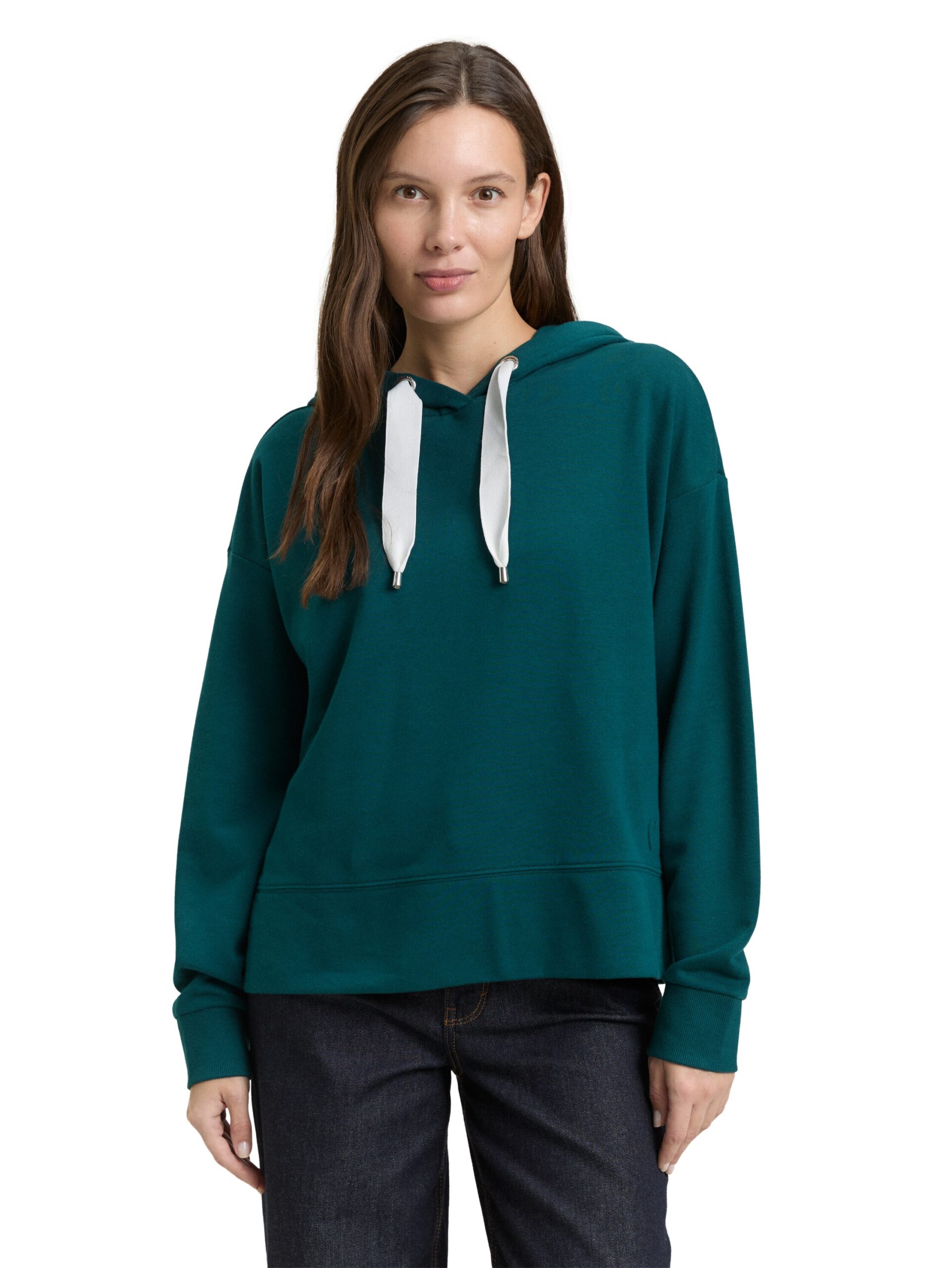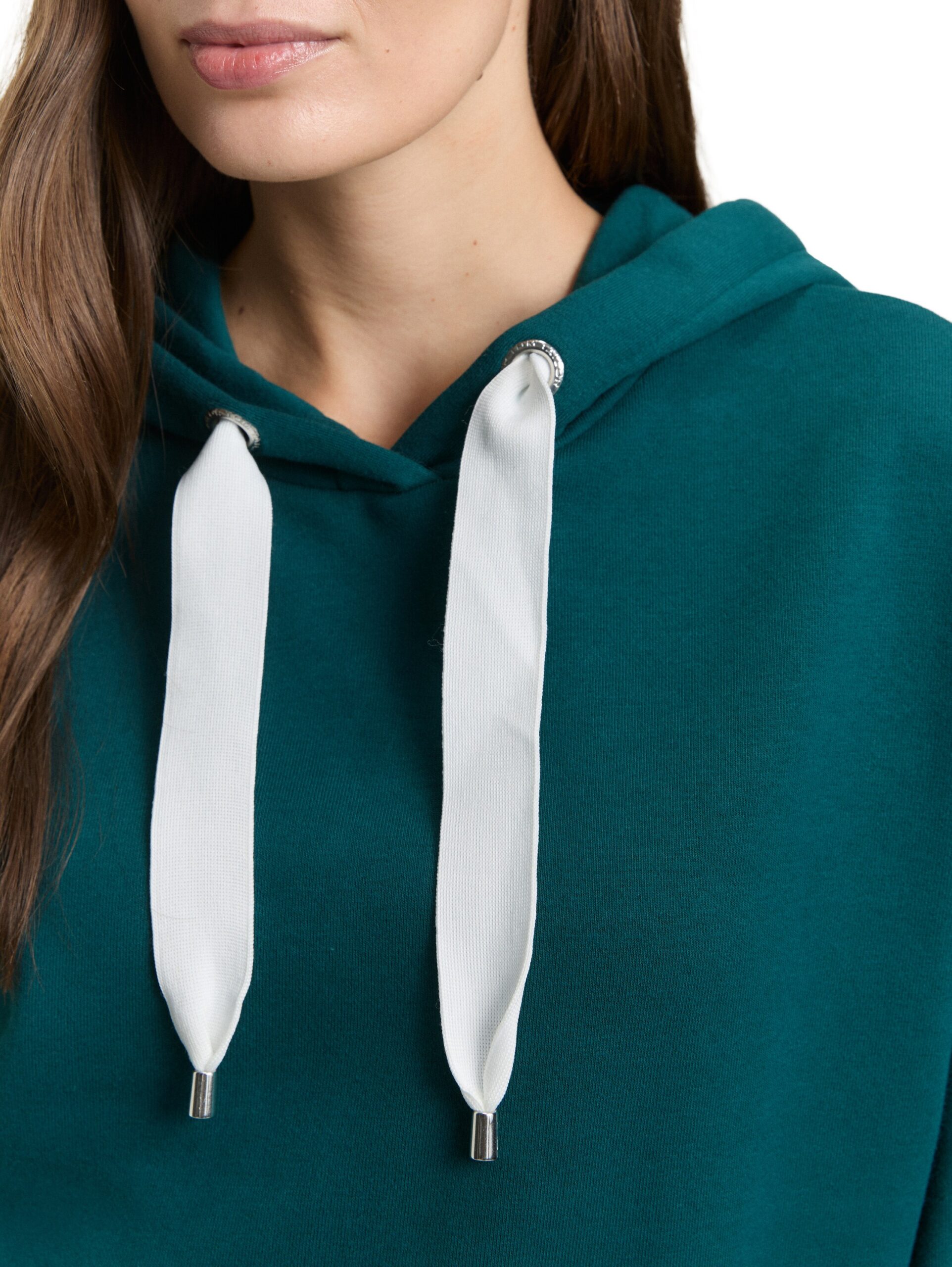 Hoodie Sweatshirt mit tonalem 3D-Herz am Saum. Mit Kordelzug an der Kapuze und kurzen Seitenschlitzen.