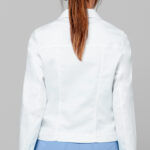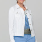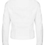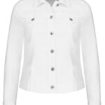 Ein vielseitiges Must-have: Unsere Jeansjacke June aus cleanem weißen Denim kombiniert klassische Elemente mit modernen Akzenten. Der stretchige Materialmix und die leicht taillierte Passform bieten optimalen Tragekomfort. Stilvolle Details wie der Kentkragen, die Knopfleiste mit Logo-Zierknöpfen und die Pattentaschen runden den Look ab. Mit ihren langen Ärmeln und dem typischen Jeansdesign ist June der perfekte Begleiter für trendige Freizeit-Looks oder entspannte Alltagskombinationen.