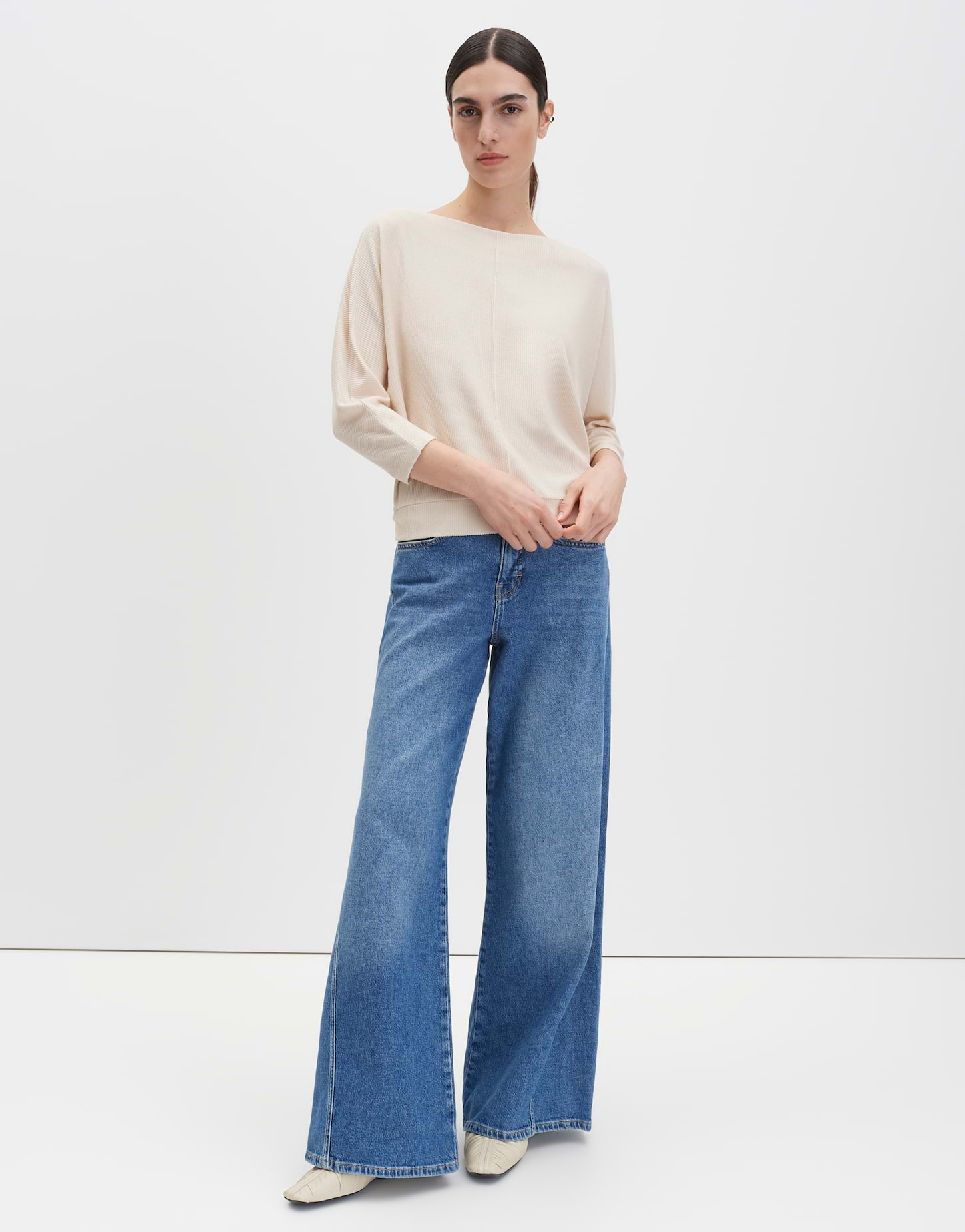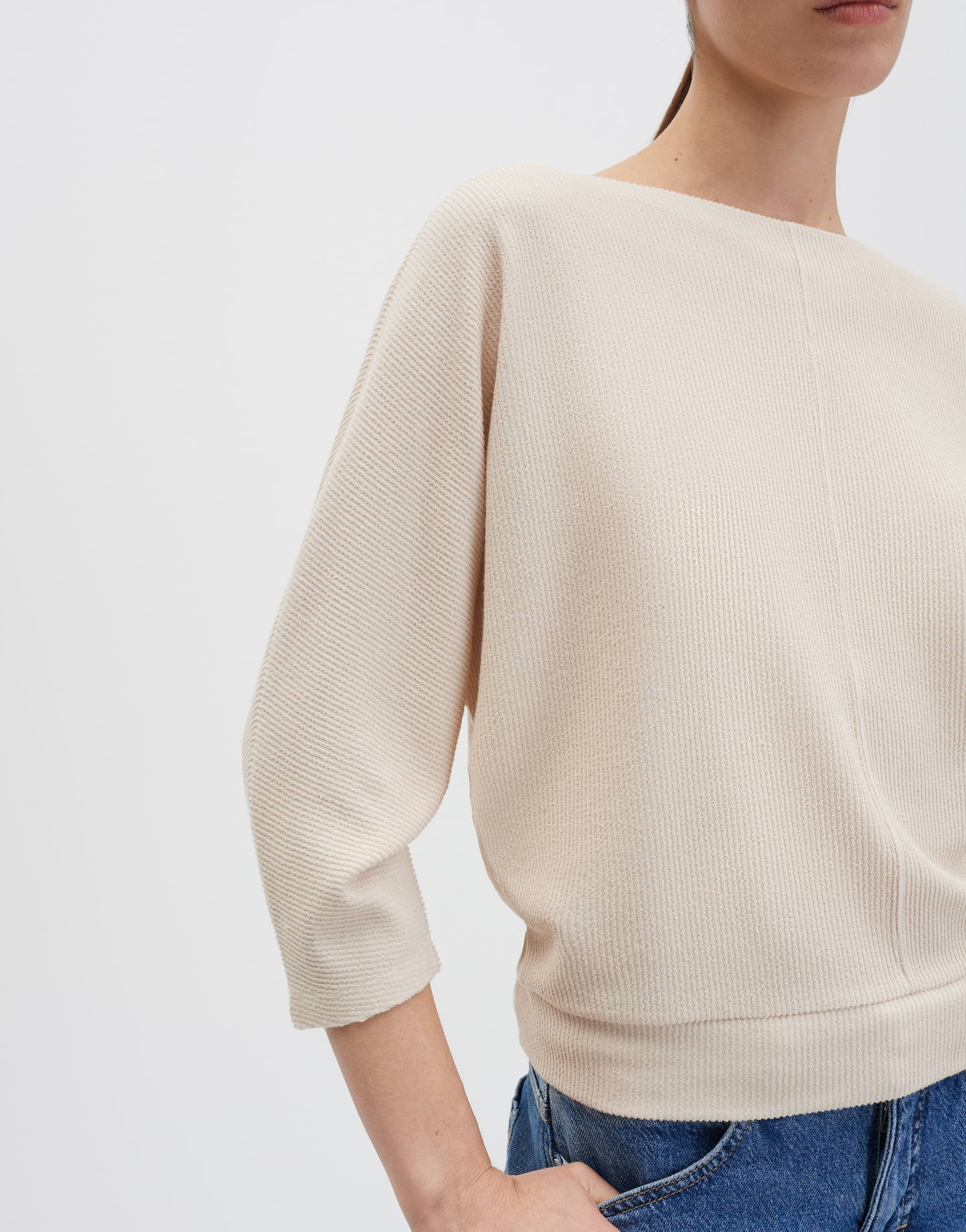 Einer unserer beliebtesten Schnitte, da er sich durch seine besondere Form deutlich von einem klassischen Jerseyshirt abhebt. Der fein gerippte Jersey KORIELL mit weitem Fledermausschnitt verleiht dem Shirt eine moderne Silhouette, schafft Volumen und sorgt gleichzeitig für maximalen Tragekomfort.