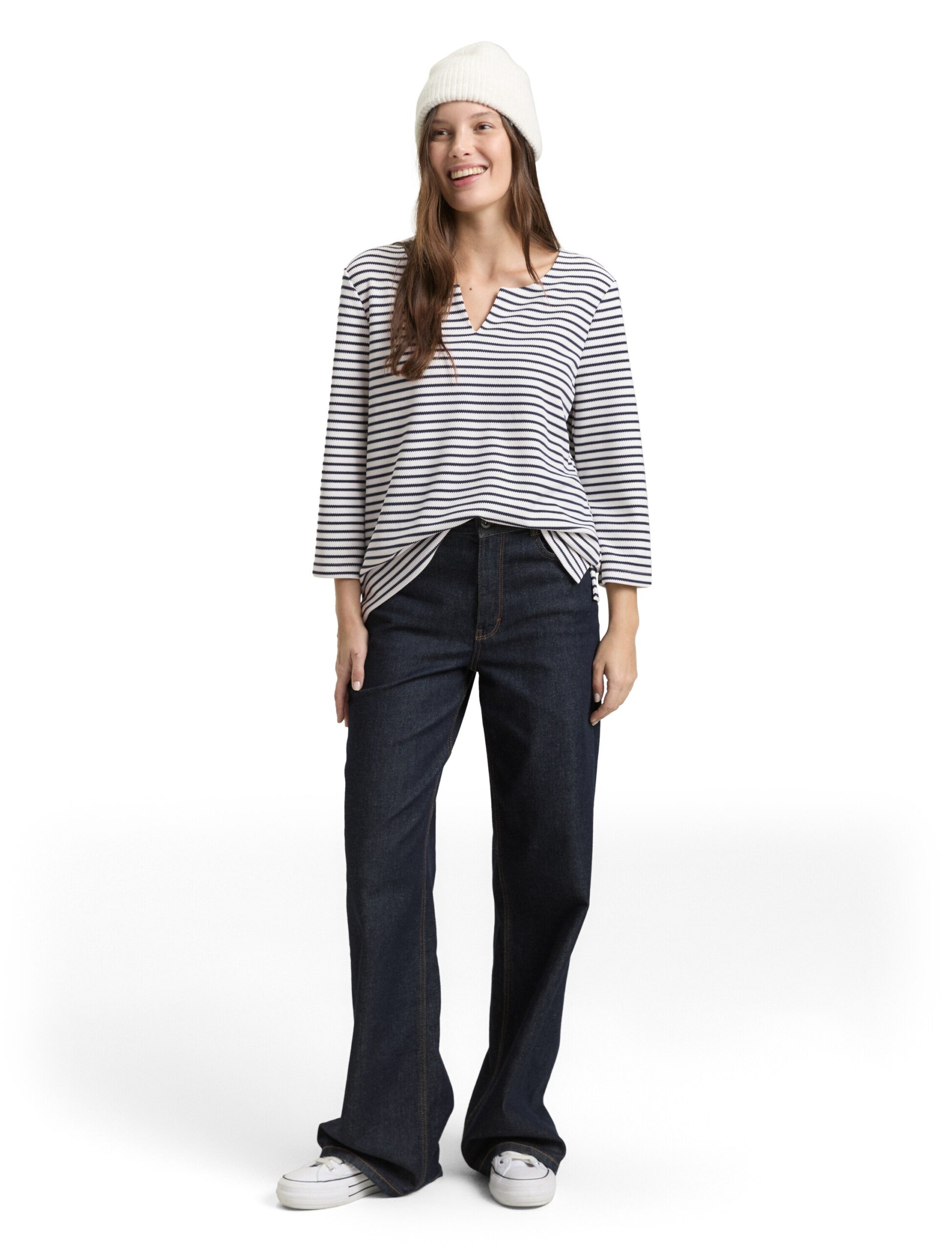 Gestreiftes Longsleeve mit 3/4-Arm und Schlitz am Ausschnitt. Aus einem strukturierten Jacquard-Stoff.