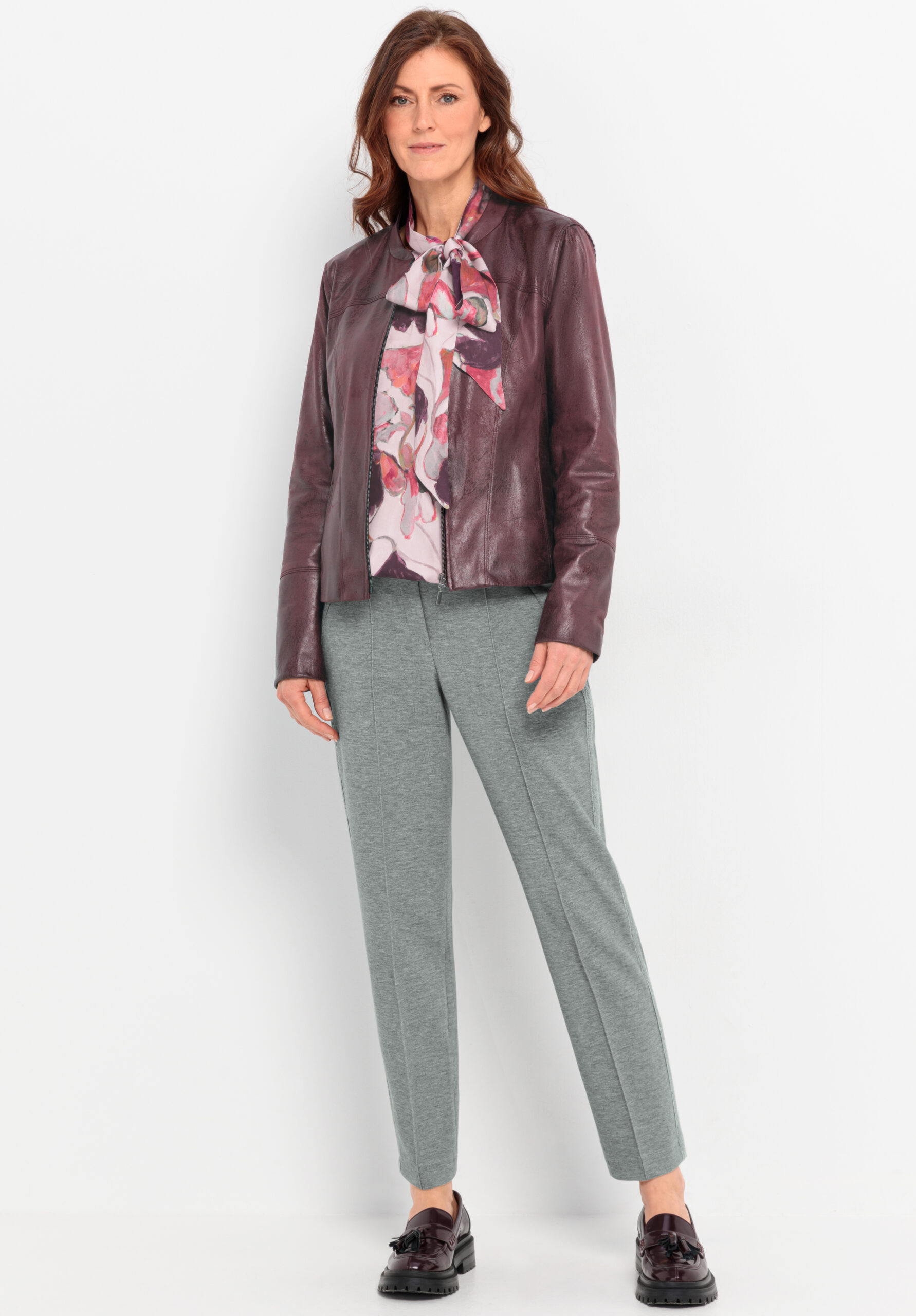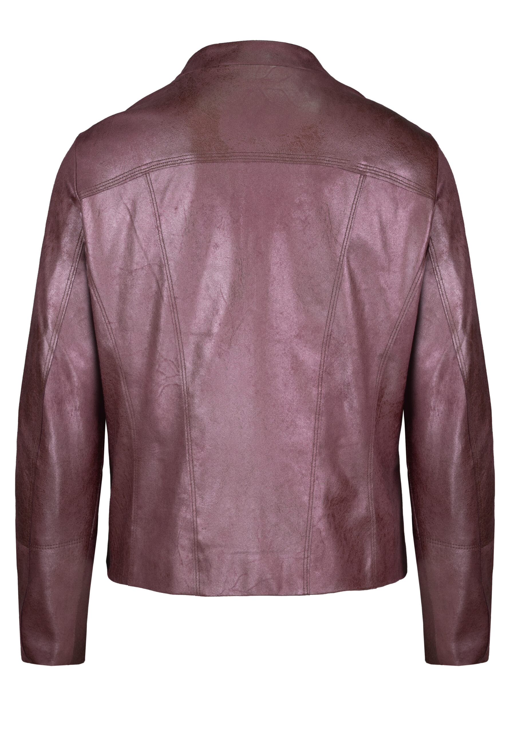 Unsere neue moderne Lederimitatjacke Anna in der Trendfarbe Mulberry überzeugt mit stilvollem Design und angenehmem Tragekomfort. Aus einem hochwertigen Materialmix gefertigt und vollständig gefüttert, bietet sie eine edle Optik und hohen Komfort. Mit Stehkragen, 2-Wege-Reißverschluss und praktischen Eingrifftaschen präsentiert sie sich vielseitig und alltagstauglich. Teilungsnähte, Langarm und der kurze, gerade Schnitt unterstreichen den modernen Look. Ein echtes Must-have, das sich sowohl chic als auch leger kombinieren lässt.