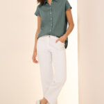 Diese leichte Sommerbluse von CECIL für Damen punktet mit ihrem klassischen Hemdkragen und den lässigen dropped shoulders. Seitliche Schlitze verleihen ihr eine entspannte Passform. Die leichte Leinen-Qualität macht sie besonders angenehm zu tragen. Sommerbluse Hemdkragen Dropped Shoulders Seitliche Schlitze Angenehme Leinen-Qualität Material: 100% Leinen