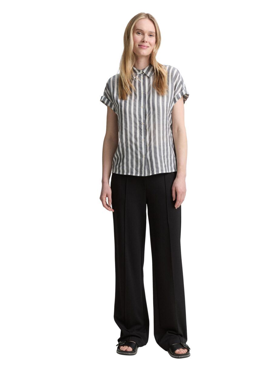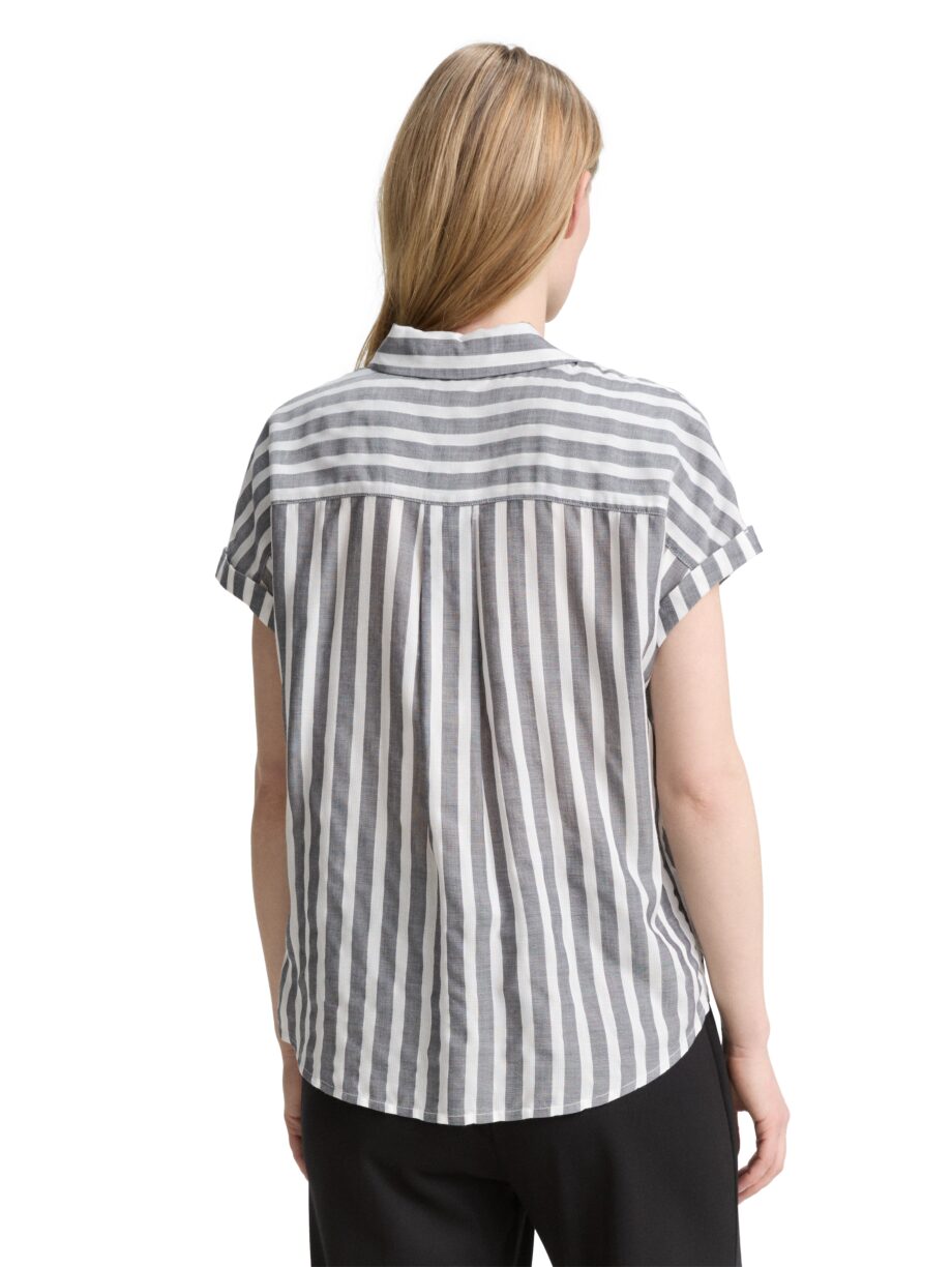 * Gestreifte Bluse aus Viskose mit Kragen, Knopfleiste und fixiertem Ärmelaufschlag