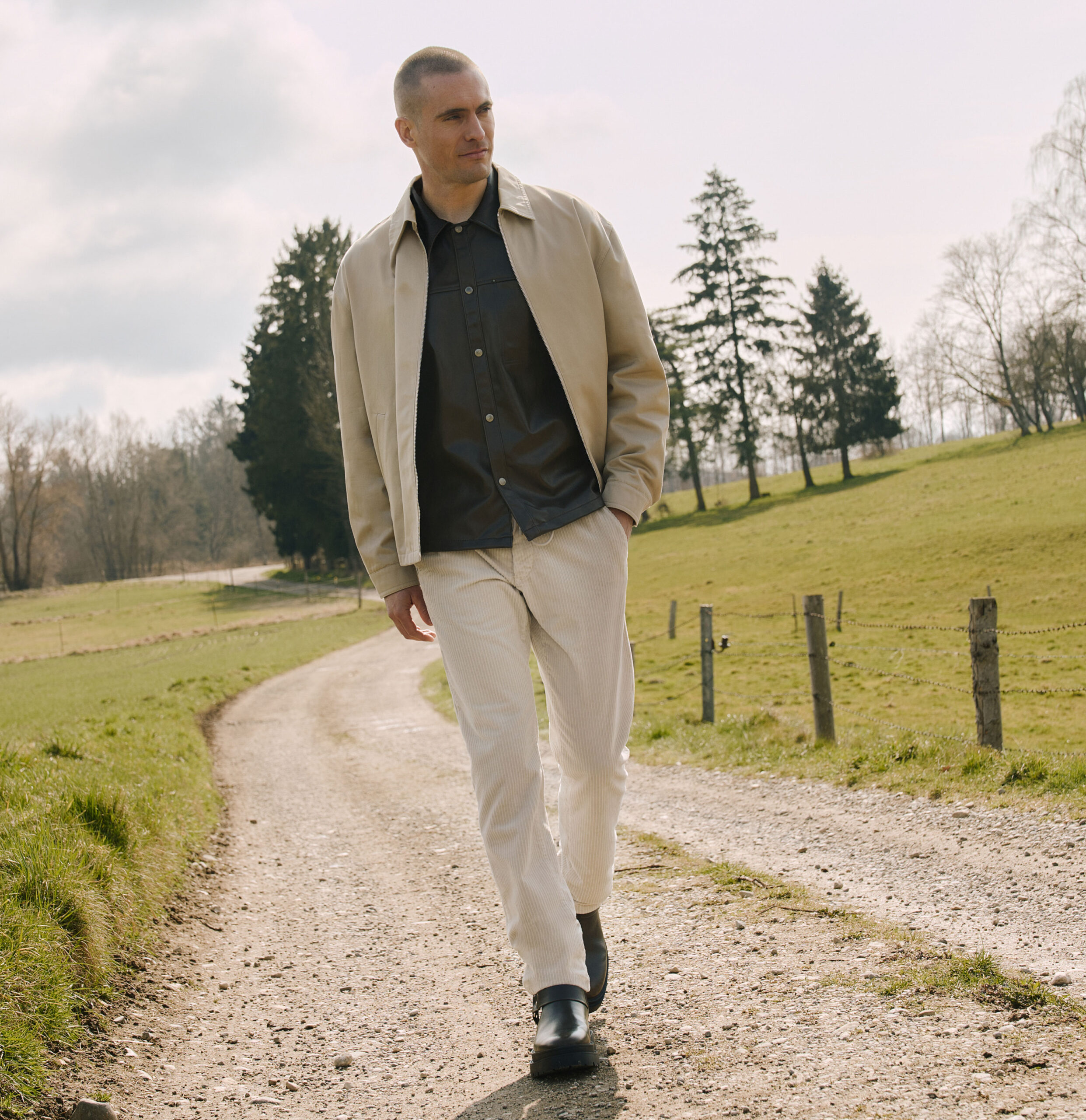 Regular Fit, gerades, bequemes Bein, etwas weiterer Schnitt im Oberschenkel, klassische Silhouette, angenehme Leibhöhe, Tunnelzug am Bund, Chino-Modell, Fancy Corduroy, hochwertige, elastische Cord-Qualität, sehr weicher Griff, hervorragendes Rücksprung-Verhalten, feiner Glanz, sportive Optik, hoher Tragekomfort, Das Model ist 1,85m groß und trägt die MAC Bundweite 33 und Länge 32, Fußweite bei Größe 33: 38cm