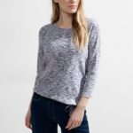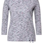CECIL Damenshirt, 3/4 Arm, Melange Optik, Ripp Struktur, Rundhalsausschnitt, Tunnelzug im Saum