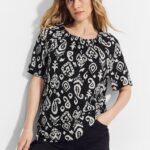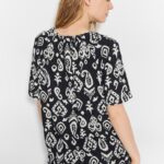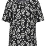 Die Carmen Bluse für Damen von CECIL ist eine bezaubernde Sommerbluse mit einem elastisch gerafften Ausschnitt und kurzen Ärmeln. Das Ornament Muster verleiht ihr eine verspielte Note, während die Möglichkeit besteht, sie auch schulterfrei zu tragen, für zusätzliche Vielseitigkeit und Stil.