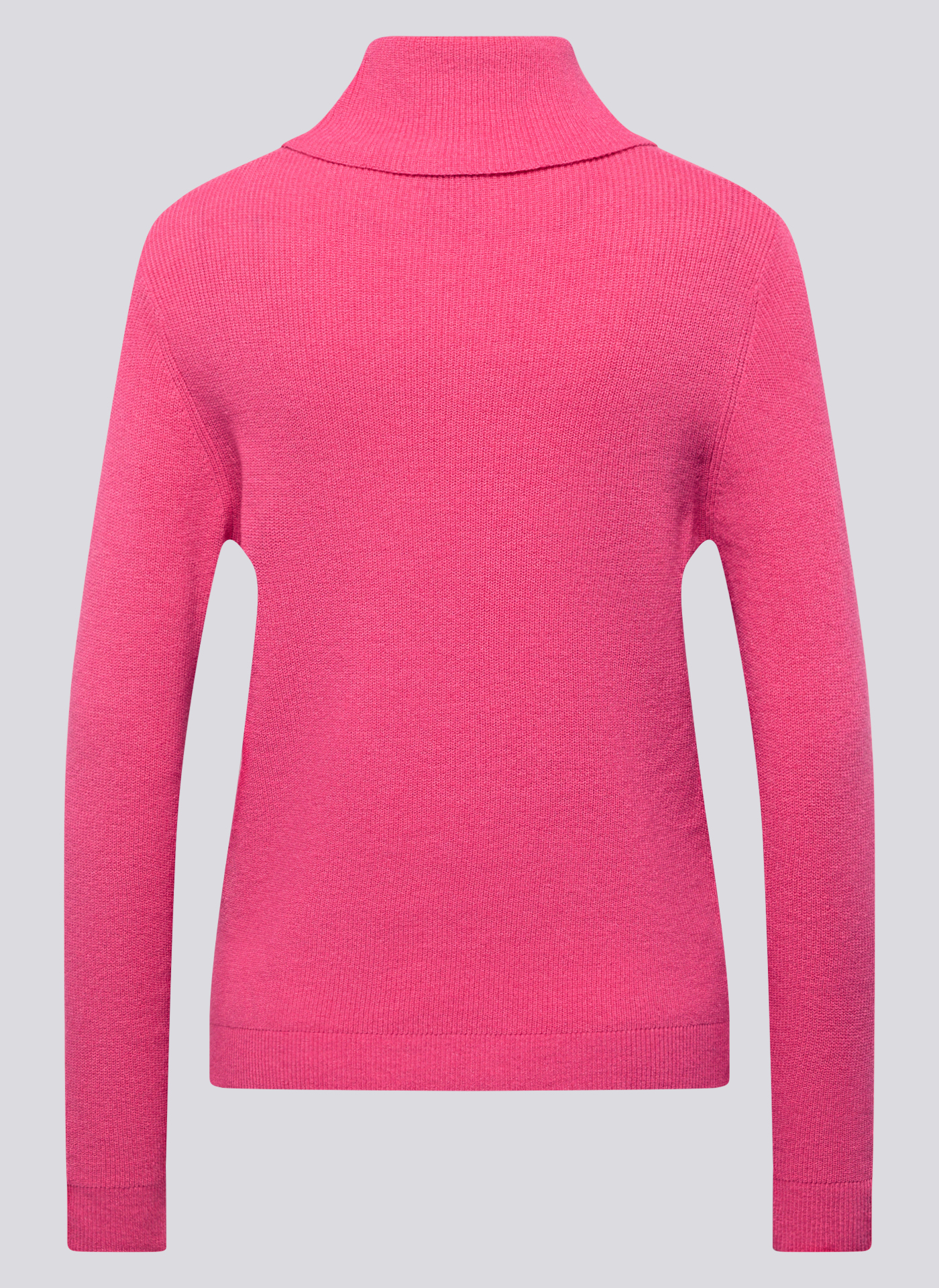 Dieser Pullover punktet mit seinem cleanen Design und einer fein strukturierten Rippenoptik. Der hohe Rollkragen sorgt für ein angenehmes Tragegefühl und schützt an kühleren Tagen. Die figurbetonte Passform macht ihn zur idealen Wahl für vielseitige Kombinationen _ ob solo getragen oder unter Blazern und Jacken. Weiche Feinstrickqualität. Angeschnittener Rollkragen. Figurbetonte Form. Elastischer Bundabschluss. Dezenter Uni-Look.