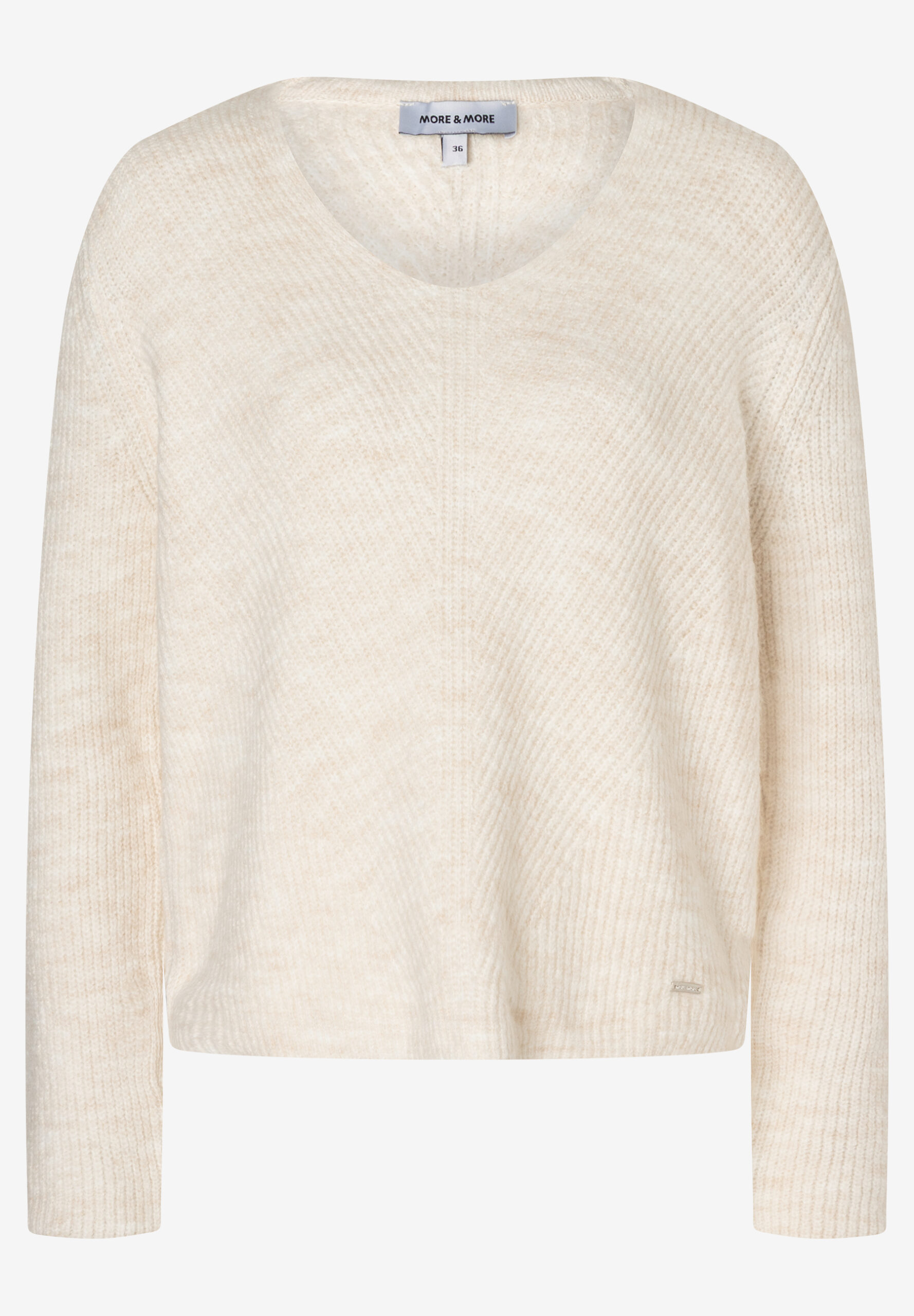 Der lockere Strickpullover von MORE & MORE mit attraktiver Rippenstruktur und femininem V-Ausschnitt ist ein zeitloser Allrounder und bietet unzählige Stylingmöglichkeiten. Er sieht zur lässigen Jeans, weiten Marlenehose oder zum kurzen Faltenrock gleichermaßen gut aus und sorgt dank der kuschlig-weichen Strickqualität für ein tolles Tragegefühl.