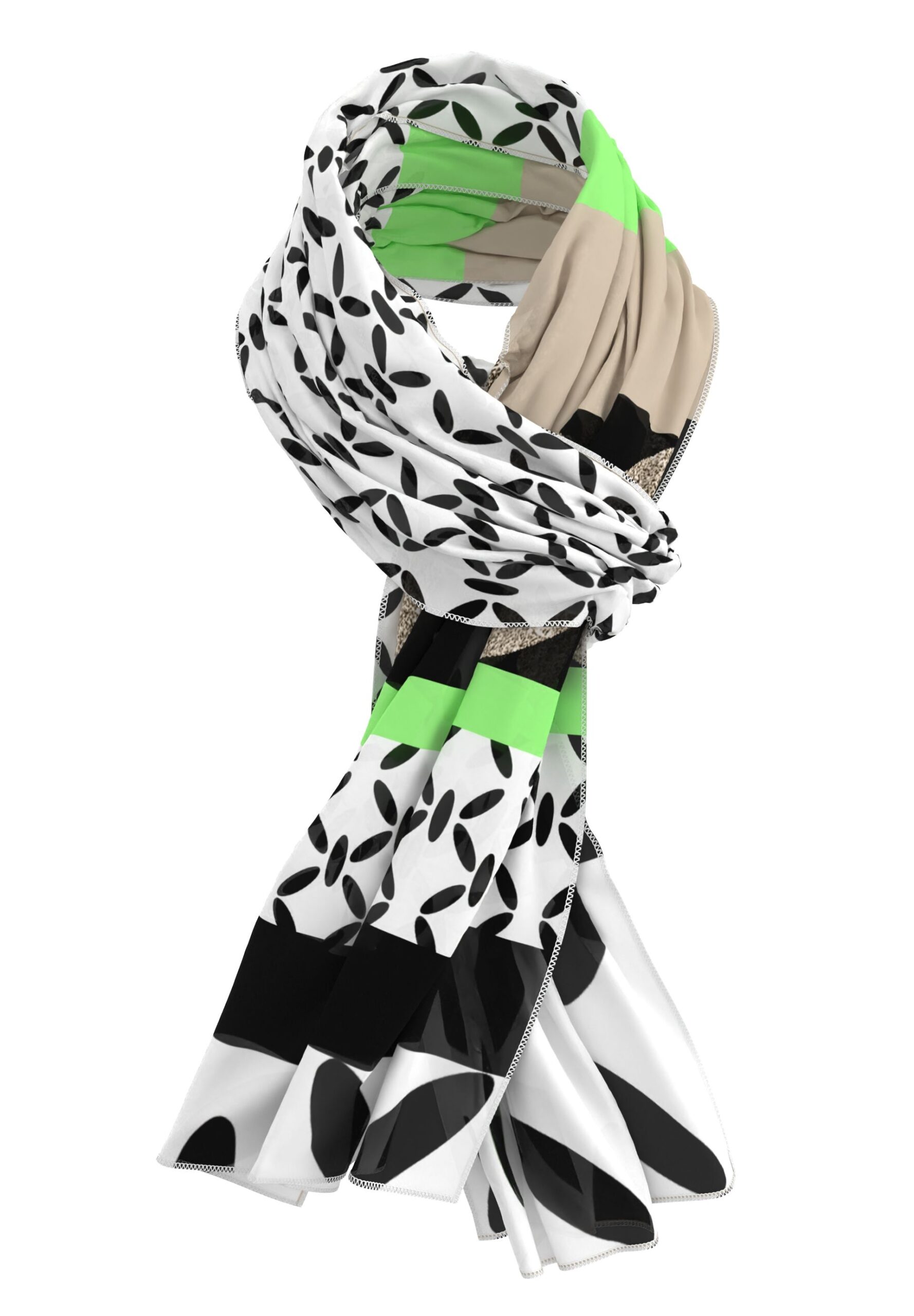 Moderner Schal mit kontrastreichem Muster und fließendem Material für ein ausdrucksstarkes Styling.