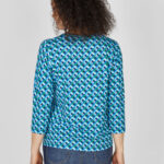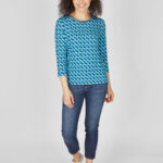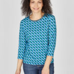 Entdecken Sie unser modisches Shirt mit 3/4-Arm für Damen! Dieses vielseitige Oberteil verfügt über einen schmeichelhaften Rundhalsausschnitt und ein stilvolles Allover-Muster, das Ihrem Look eine trendige Note verleiht. Das Band am Halsausschnitt verleiht dem Shirt eine zusätzliche Besonderheit. Dank der taillierten Passform schmeichelt dieses Shirt Ihrer Silhouette und sorgt für einen perfekten Sitz. Ein Must-Have für Ihre Garderobe!