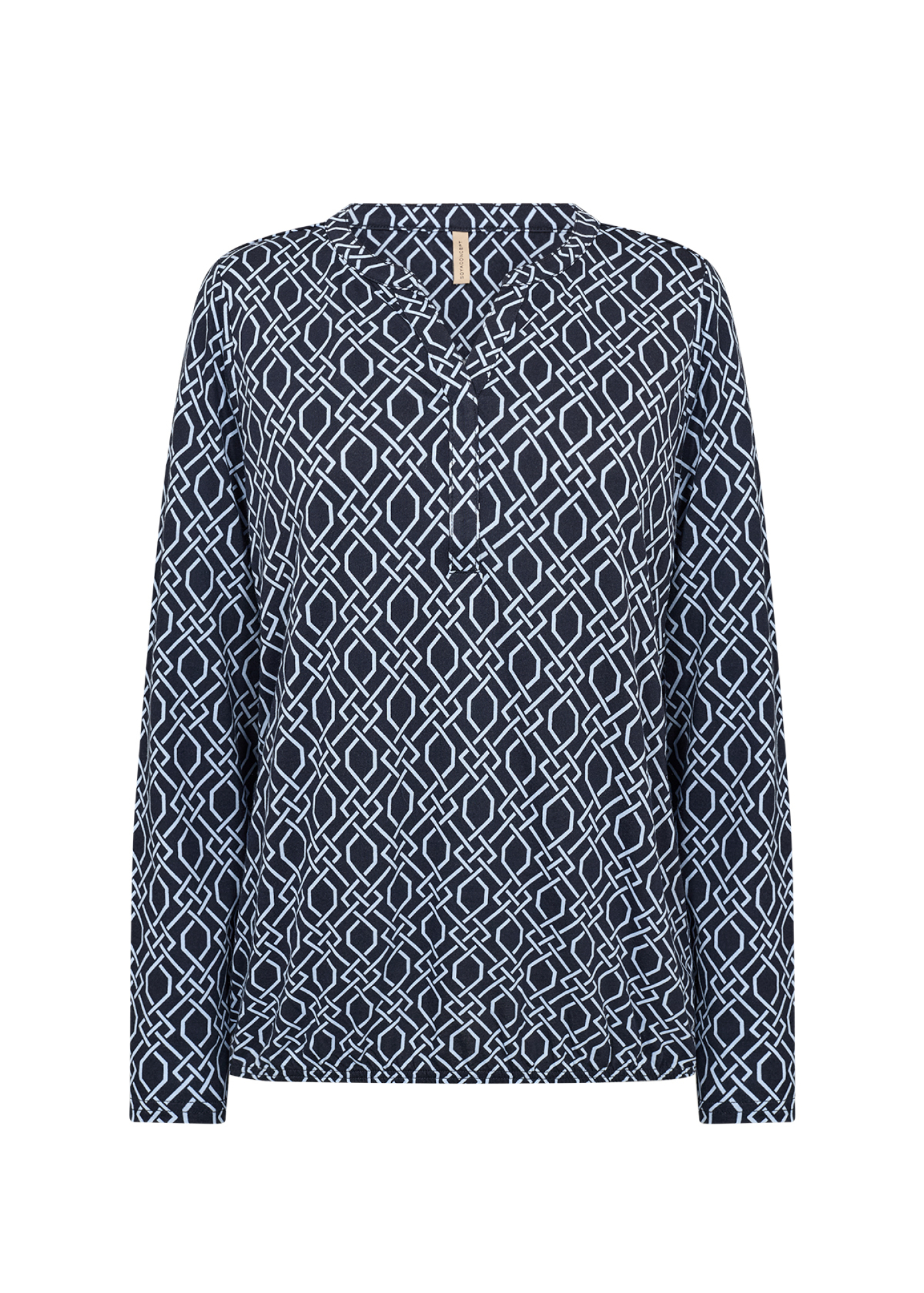 Die SC-FELICITY AOP 530 Bluse ist aus einer Mischung aus 50% Bio-Baumwolle und 50% Viskose gefertigt. Sie hat einen V-Ausschnitt und einen auffälligen geometrischen Druck. Kombiniere sie mit einer neutralen Hose oder einem klassischen Rock für einen eleganten Look.