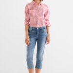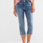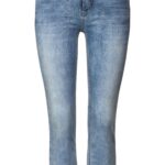 Summer ahead! Sommerliche Damenjeans in 3/4-Länge von Street One im Style York. In Slim Fit und mit schmalen Beinen formt sie eine feminine Silhouette, die sich mit mittelhohem Bund und Stretchanteil sehr bequem trägt. Kleines Detail sind die seitlichen Schlitze im Saum. Ein Reißverschluss mit Knopf ergänzt den 5-Pocket-Style.