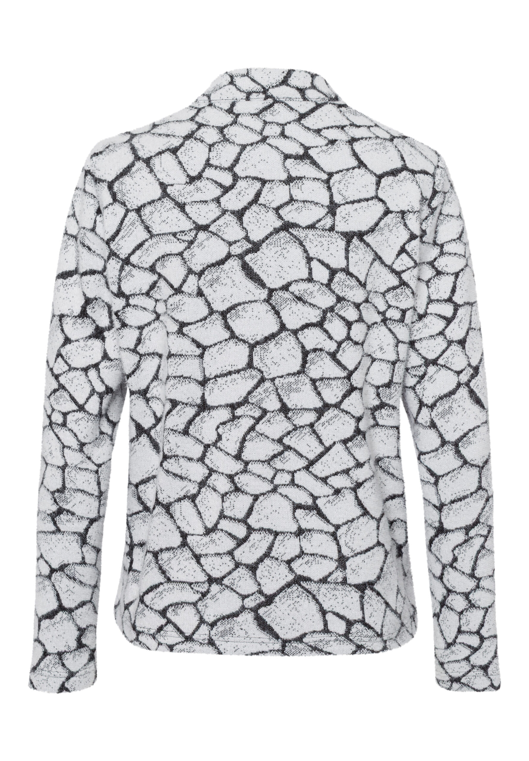 Strickjacke in modernem Fancystrick-Muster in zeitlosen anthrazit-ecru-Nuancen. Gerade geschnitten, Passenabtrennung im Vorderteil und dekorativen Fake-Patten bietet der Style einen angenehmen Tragekomfort. Ausgestattet mit einem femininen Stehbund, Langarm und modischem 1-Wege-Reißverschluss.