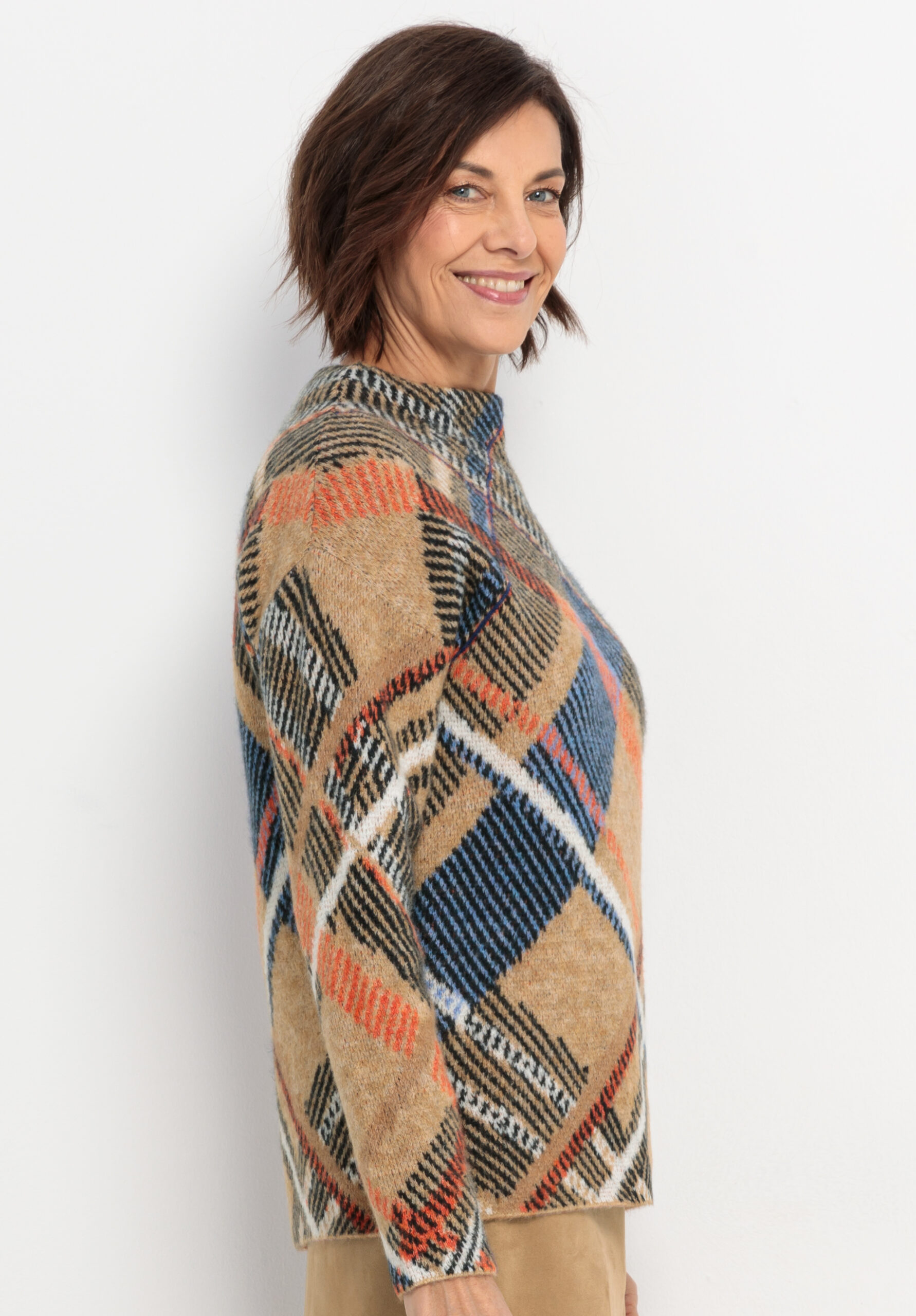 Unser Strickpullover Uranus ist der neue Favorit für kuschelige Tage! Mit seinem trendigen Karo-Dessin in angesagten Farben setzt er modische Akzente. Der weiche Grobstrick mit Wollanteil sorgt für ein besonders angenehmes Tragegefühl, während die gerade, lässige Passform und der etwas höhere Rundhalsausschnitt den Look perfekt abrunden. Mit Langarm und dem gemütlichen Design ist Uranus der ideale Begleiter für stylische, aber entspannte Outfits – einfach überziehen und wohlfühlen!