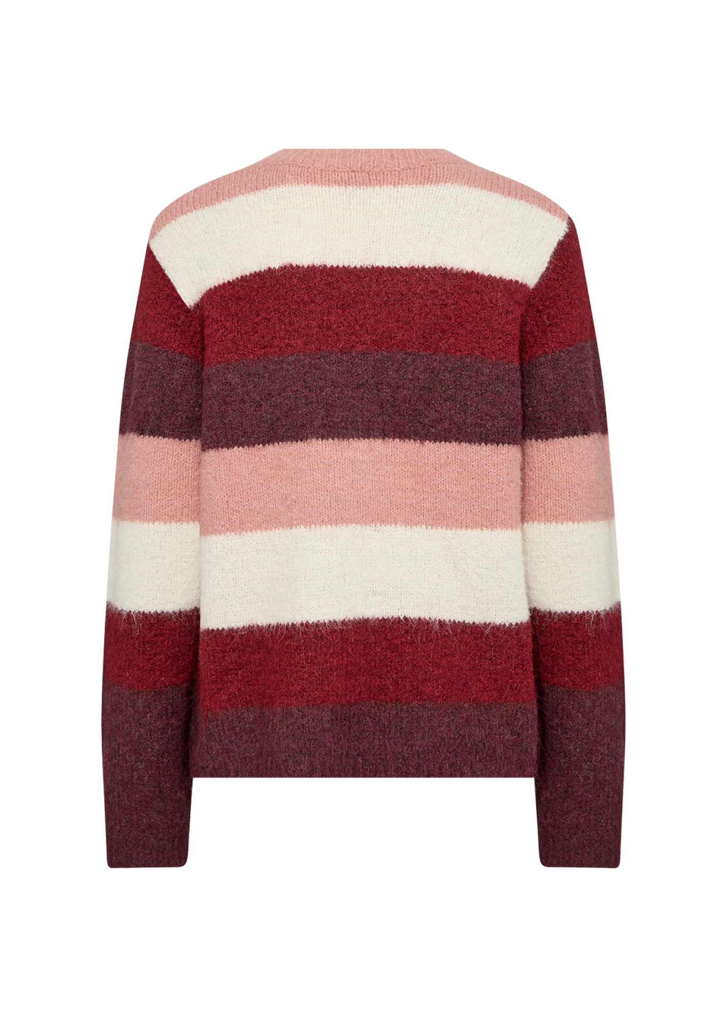 Der SC-ILENE 3 Pullover besteht aus 59% recyceltem Polyester, 21% Nylon, 11% Polyester, 8% Wolle und 1% Elasthan. Der Pullover hat einen Rundhalsausschnitt und breite, horizontale Streifen in wechselnden Farbtönen. Kombiniere ihn mit Jeans für einen entspannten Look oder trage ihn über einem Hemd mit Kragen für zusätzliche Textur.