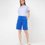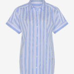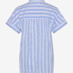 Die Damenbluse im Style VIV verkörpert mit ihrer frischen Ausstrahlung die Essenz des Sommers. Das Design überzeugt mit überschnittenen Schultern, einem klassischen Hemdkragen und einer oversized Passform, deren legere Optik durch Raffungen entlang der Schulterpasse und einen gerundeten Saum vervollständigt wird. Der zeitgemäß inszenierte Streifenlook unterstreicht den trendigen Charakter der Halbarm-Bluse und setzt modische Akzente. Das Herzstück der Bluse bildet der Popeline-Stoff, eine Mischung aus Baumwolle und Viskose. Diese Kombination garantiert eine weiche, hautsympathische Qualität, Farbbeständigkeit und eine pflegeleichte Handhabung.