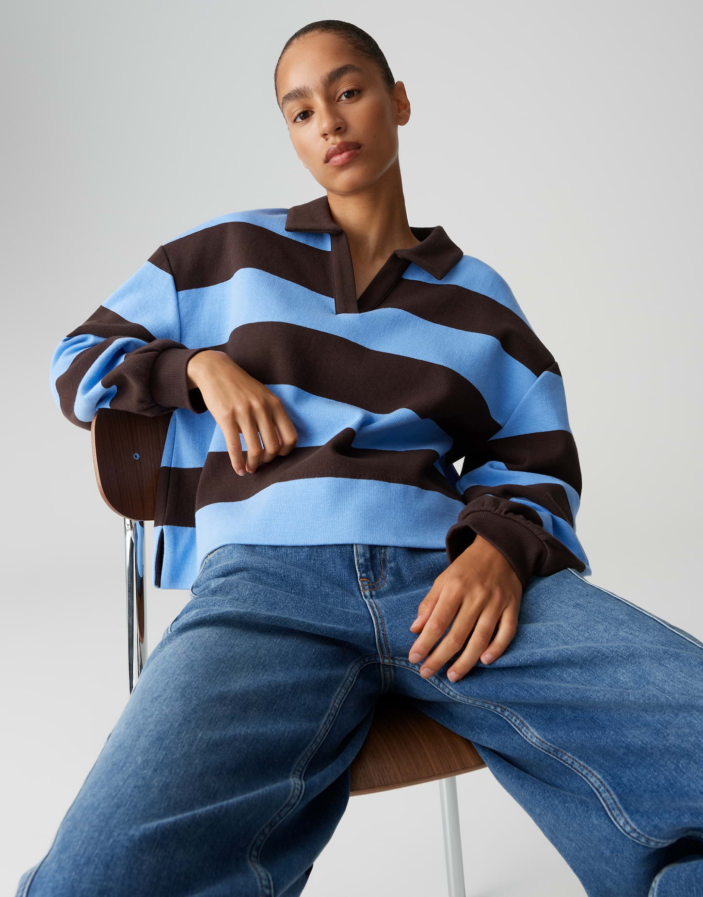 Breite Rugby Streifen in kontrastreichen Farben machen dieses Sweatshirt zum Key Piece für angesagte Preppy Looks im Herbst. Das markante Design setzt auf klassische Sportästhetik und sorgt für modischen Schwung im Alltag.