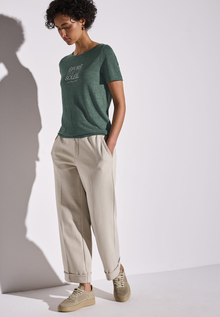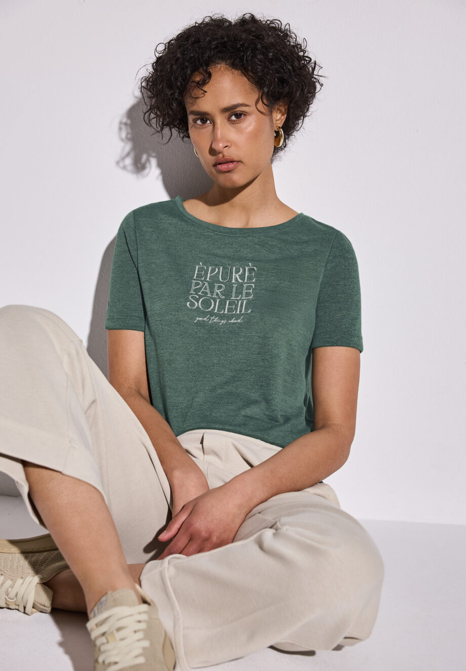 Dieses Kurzarmshirt von Street One für Damen begeistert mit einem Wording-Artwork. Der Rundhalsausschnitt und der gerundete Saum verleihen ihm eine lässige Note. Der angenehme Materialmix sorgt für ein weiches Tragegefühl. Kurzarmshirt Rundhalsausschnitt Wording-Artwork Gerundeter Saum Angenehmer Materialmix Material: 80% Polyester, 20% Viskose