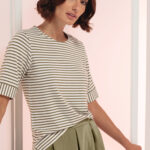 Wir lieben Streifen! Unser neues Kurzarmshirt Dinia begeistert mit seinem angesagten Ringel-Look! Die hochwertige Viskose mit Elasthan sorgt für ein angenehmes Tragegefühl. Der etwas längere Halbarm mit breitem Ärmelsaum, der Rundhalsausschnitt und die körpernahe Passform machen Dinia zu einem vielseitigen Allrounder. Perfekt kombinierbar mit einer Jeansjacke für einen lässigen Look oder mit einem Blazer für einen stilvollen Auftritt.
