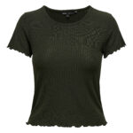 Mit coolen Styles, die du leicht mit den Favoriten in deiner Garderobe kombinieren kannst, siehst du in der Schule, an der Arbeit und im Alltag immer toll aus. – Produkttyp : Top – Hals : Rundhals – Ärmel : Kurzarm – Länge/Größe : Verkürzt – Details : Rüschendetail – Passform : Normal geschnitten